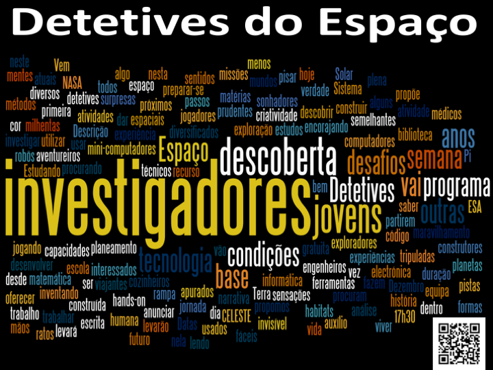 Estão a preparar-se neste momento. Como? Estudando matemática e ciências e outras matérias, jogando, lendo, inventando… procurando o saber e a descoberta. É isso que propomos nesta semana de múltiplas e intensas atividades. Com auxílio da informática, mas também com as mãos e as mentes. Na Terra e no espaço. Com eletrónica e papel. A dar cor ao invisível, numa contínua experiência de desafios diversificados que terá algo a oferecer a todos os interessados no futuro.